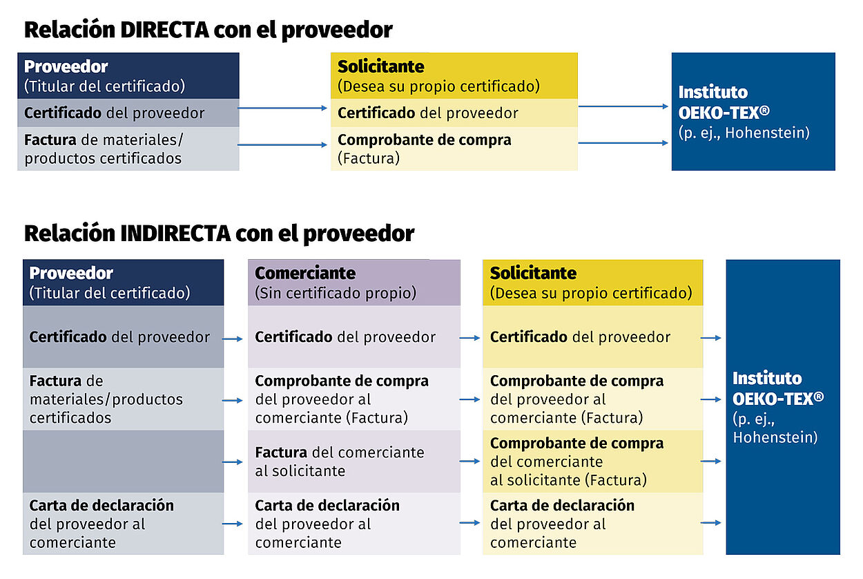 - En una relación de proveedor indirecto (comerciante, fábrica sin certificación, etc.), el solicitante proporciona: